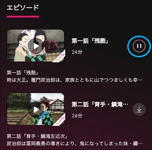 ドラマやアニメなどの場合は、エピソードから好きな話の「ダウンロードアイコン」を押してください。