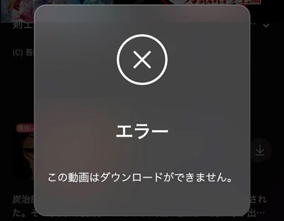 実際に無料会員でダウンロードアイコンを押しても、「この動画はダウンロードできません。」とエラー表示されます。