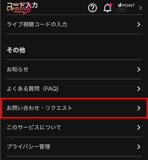 設定のその他にある「お問い合わせ・リクエスト」を選択。