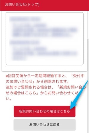 お問い合わせフォームに移動するので、「新規お問い合わせの場合はこちら」をクリック。