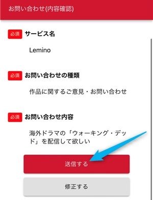 最後に確認画面で「送信する」をクリックすれば、Leminoにリクエストする方法は完了です。