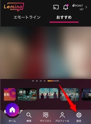 Leminoにログインできたら、画面下メニューから「設定」を選択。