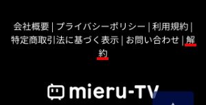 - 解約方法はmieru-TVの一番下にある「解約」から手続きできる