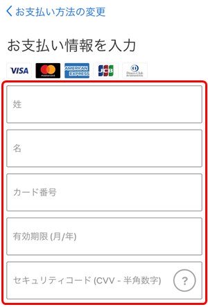 お支払い情報を入力するになるので、変更する支払い方法を選びます。
