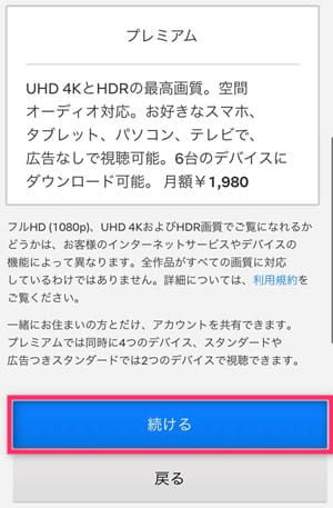 広告つきスタンダードを選んだら、一番下の「続ける」をクリック。