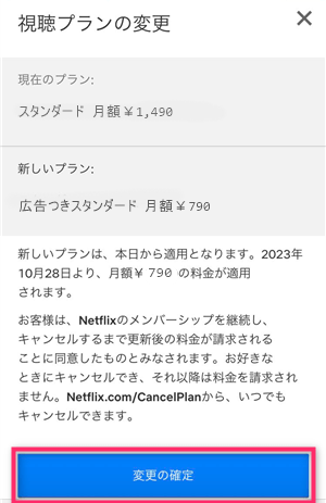 ※Netflixアプリからは広告付きプランに変更できません。
