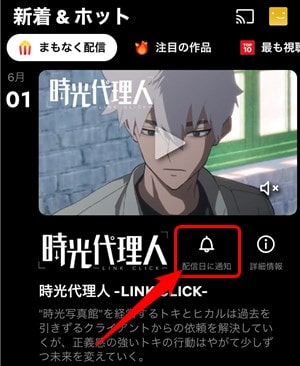 また、「配信日に通知」をクリックすれば、配信日にスマホ・タブレットの通知でお知らせしてくれるので、すぐに視聴できます。