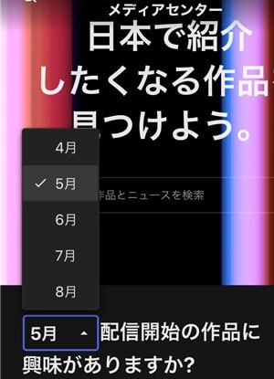 これで、月ごとの配信予定スケジュールが表示されて、作品画像(タイトル)と配信日を確認できます。