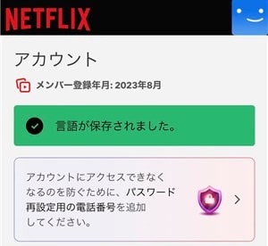画面に「言語が保存されました。」と表示されたら、Netflixの言語設定を変更する方法は完了です。