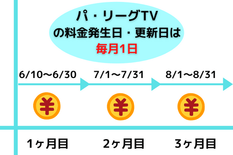 • パ・リーグTVの更新日は「毎月1日」で、料金は日割り計算されない