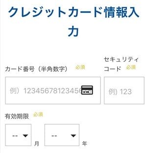 クレジットカード情報入力になるので、新しいカードの「カード番号」「セキュリティコード」「有効期限」を入力・選択。