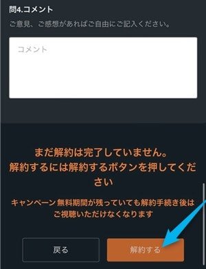 無料期間中に途中解約すると残りの期間が利用できないので、無料期間ギリギリに解約するのがオススメです!