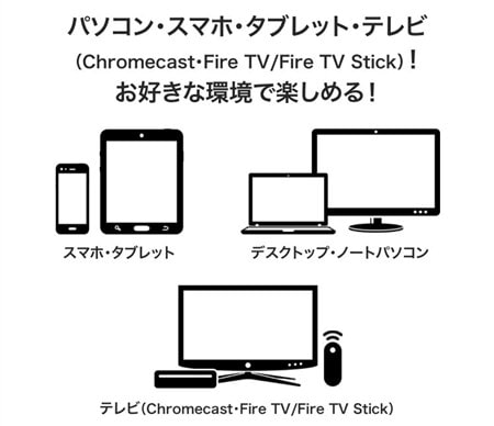 | 対応端末 | パソコン スマホ・タブレット ストリーミング端末 |