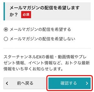 あとは「メールマガジン配信」を希望するか選んで、一番下の『確認する』をクリック。