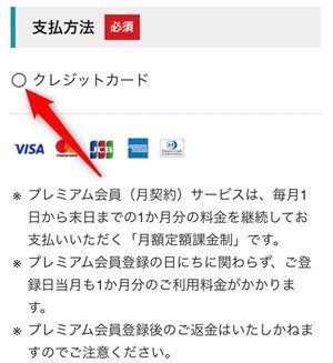 無料期間だけ利用するつもりでもクレジットカードが必要なので、Visa、MasterCard、JCB、AMEX、ダイナースのいずれかのカードを用意しておきましょう。