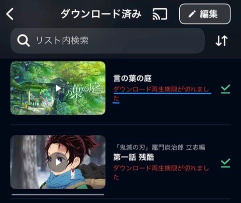 オフラインだと「ダウンロード再生期限が切れました」と表示されるので、すぐに見分けが付きます。