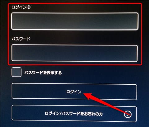 U-NEXTのログインIDとパスワードを入力して「ログイン」を押します。