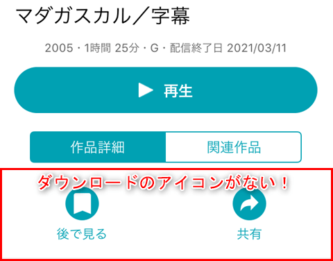 TELASAの一部作品は「ダウンロード」のアイコンがないので、そもそも動画をダウンロードできません。