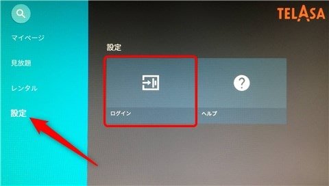 アプリ画面が表示されたら、メニューから「設定」を選んで『ログイン』をクリック。