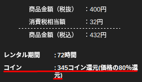 ちなみに、ビデオコインの還元率がどれくらいなのかは、レンタル作品を購入するときの確認画面でわかります。