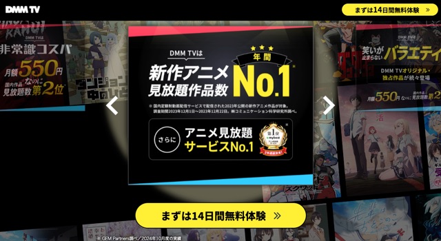 | DMM TV | 550円 | 19万本以上 | 14日間 |