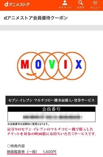 会員優待は「松竹マルチプレックスシアターズ(MOVIXやピカデリー)」の映画館で使えるクーポンを配布していて、大人1枚1,400円(通常2,000円)で購入できます。